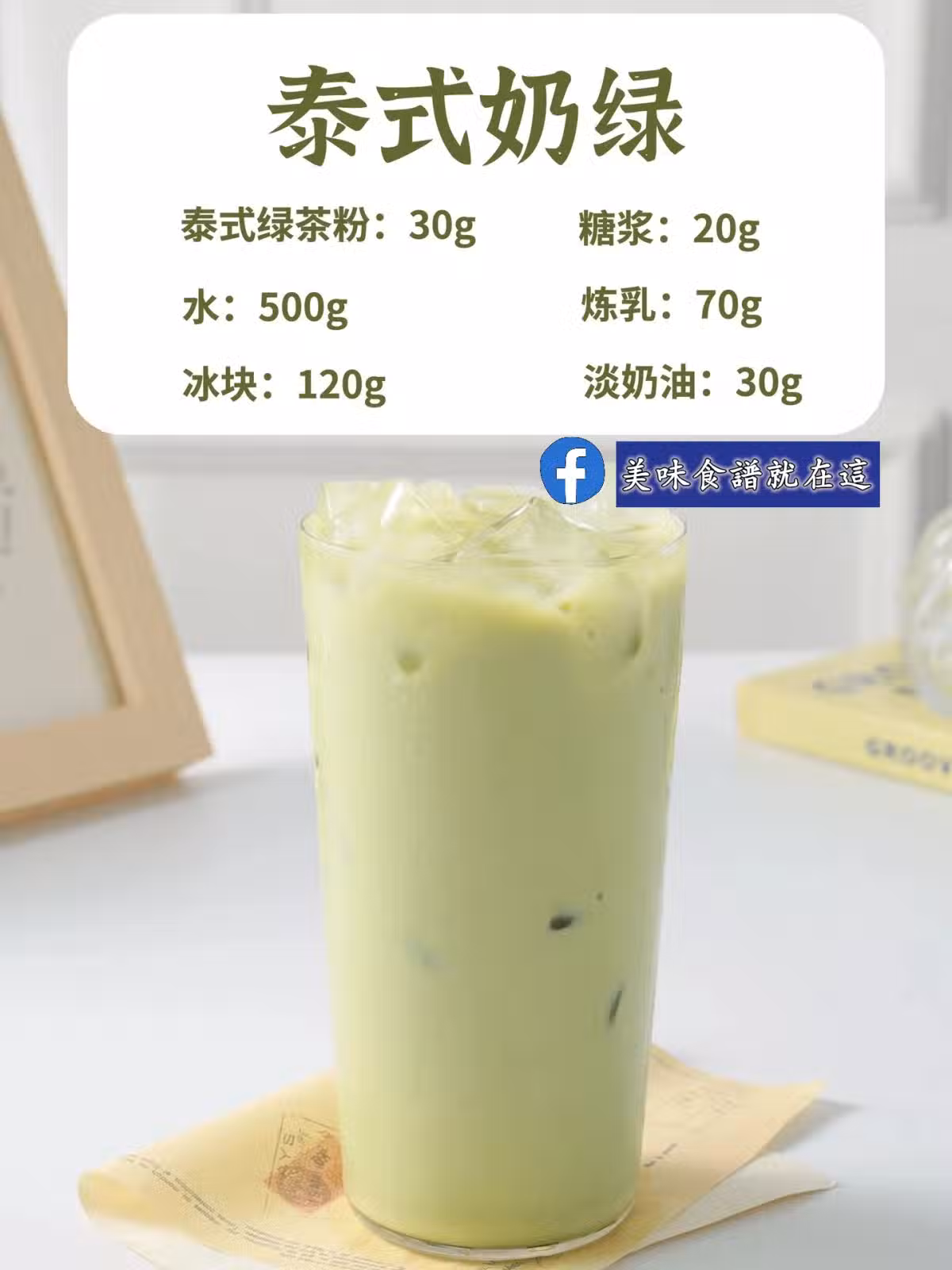 3️⃣杯子裝滿杯冰塊,倒綠茶湯,補淡奶。