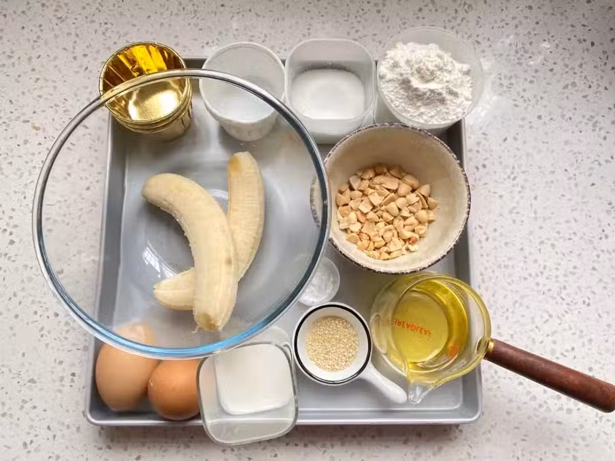 2、 把去皮了的香蕉放進料理碗裡面再用叉子壓成香蕉泥,熟透了的香蕉很輕鬆就能夠壓成泥了,所以一定要用熟透的香蕉來做。