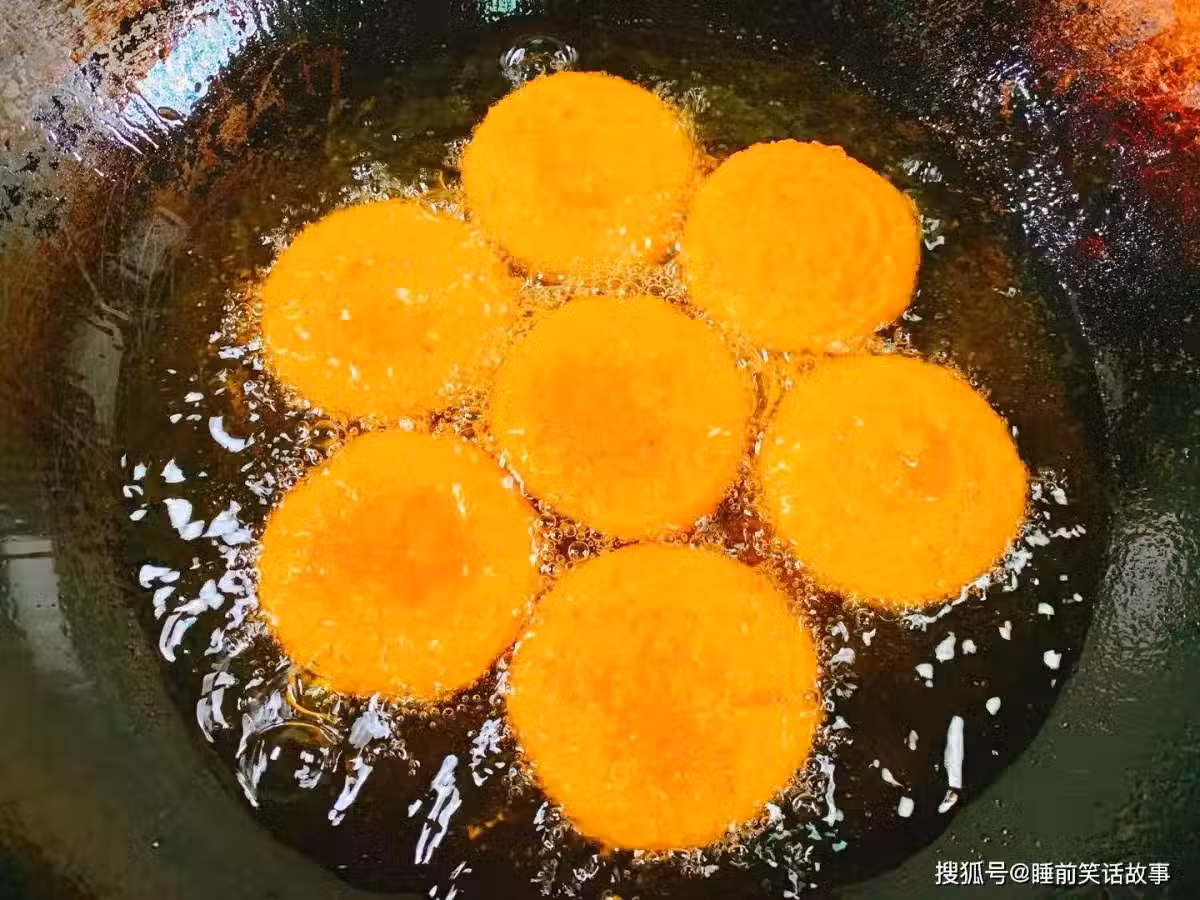 2.炸南瓜餅時,一定要注意油溫,最好用低油溫慢慢炸南瓜餅,溫度過高,南瓜餅裡面還沒炸熟,外面就會發黑的。