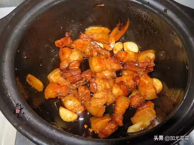 3、燜紅燒肉家裡有高湯也可以用來代替溫水,這樣味道會更上一層。
