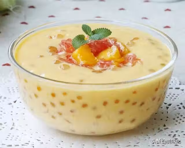 芒果2個、西柚適量、西米80克、椰漿50克、牛奶100克、白砂糖20克。