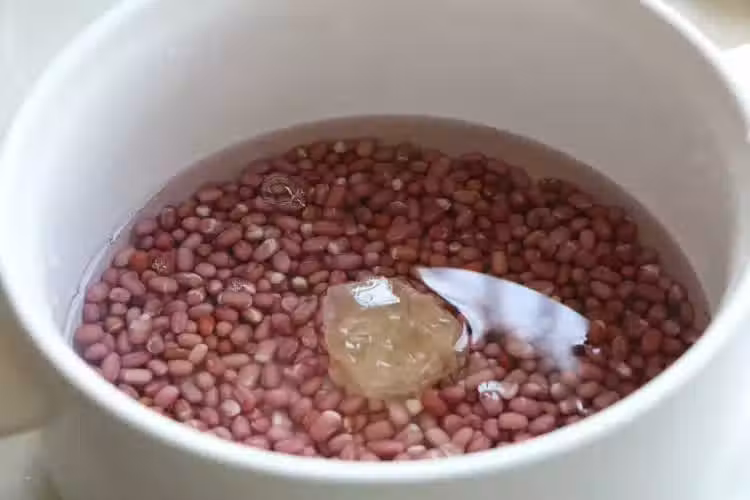 2、煮至紅豆熟爛,留出一點湯汁。