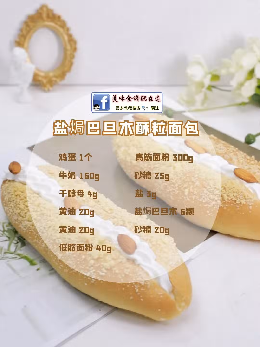 4️⃣發酵好的麵糰,用小噴壺在表面噴水,沾上做好的酥粒,放入預熱好的烤箱,180度,烤15~