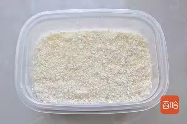11.將奶凍切成適量大小的塊狀,放到椰蓉里滾一滾,使表面沾滿椰蓉即可