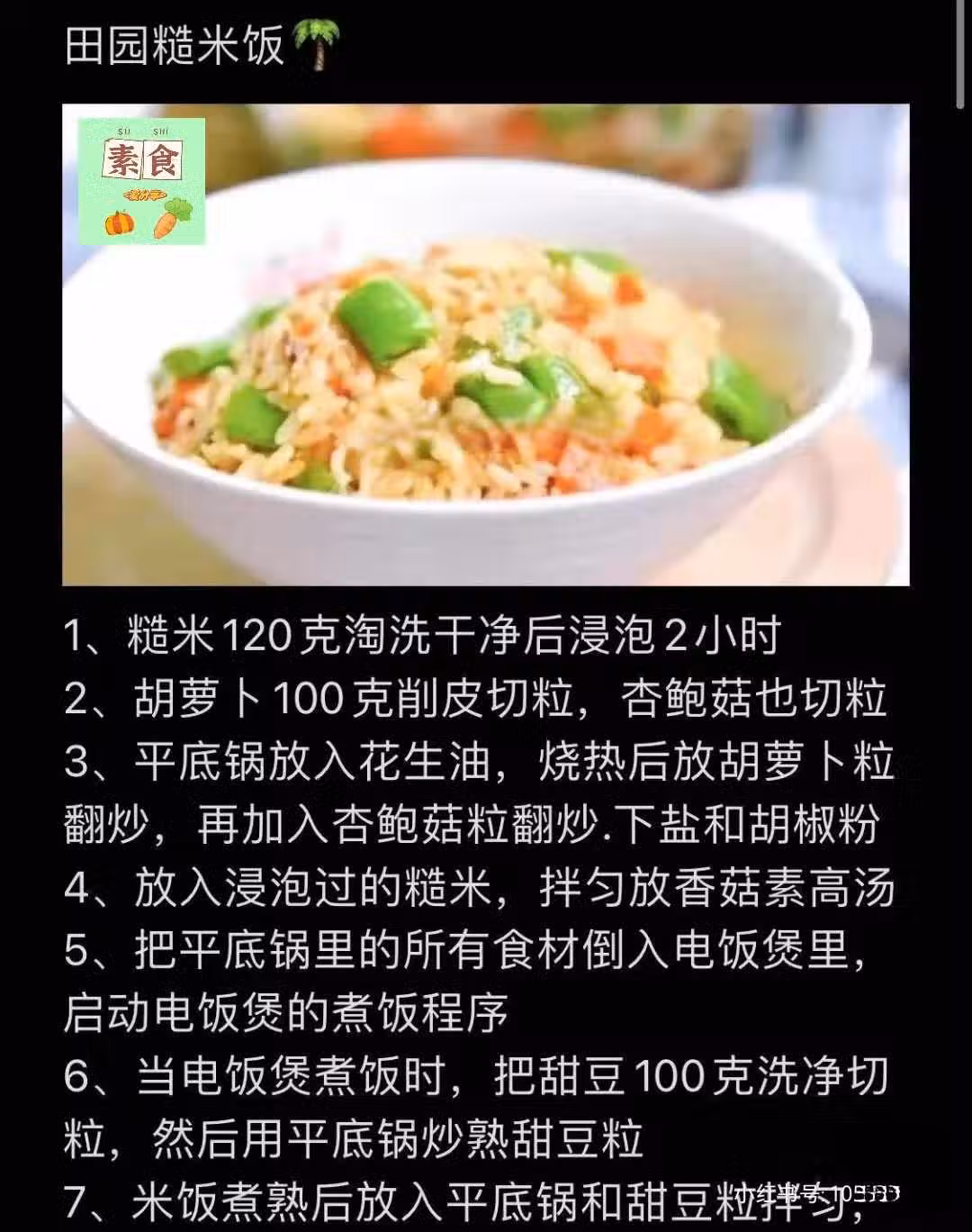 7、米飯煮熟後放入平底鍋和甜豆粒拌勻,