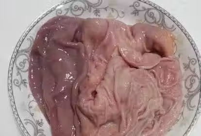 製作過程:第一步,豬肚的內壁翻出來,加上鹽和白醋,內外仔細揉搓2遍,用清水沖洗下,然後再加上點生粉,再次揉搓好,用清水沖洗乾淨,最後將豬肚上的肥油剪掉;