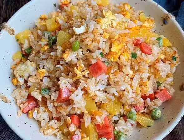 菠蘿也能吃出來花樣,跟剩米飯一炒,酸甜開胃