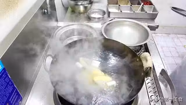 4.10分鐘以後,蓋上蓋子,關火,燜30分鐘。30分鐘以後,我們撈出三黃雞,放在冷水中浸泡冷卻20分鐘,收緊雞的表皮。