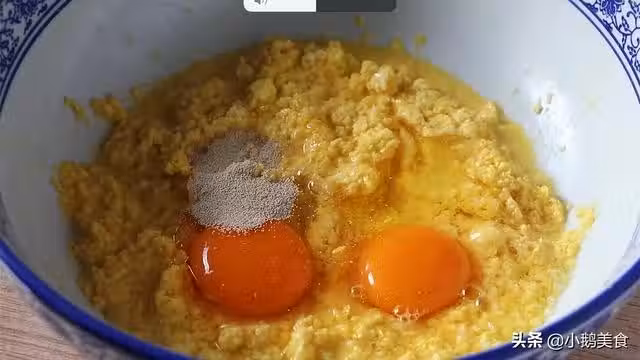 3、玉米雞蛋凈重約250g,麵粉大概需要400g,分次少量加入麵粉,攪拌成絮狀,揉成軟硬適中的麵糰,盡量多揉一會,儘可能揉光滑一點。
