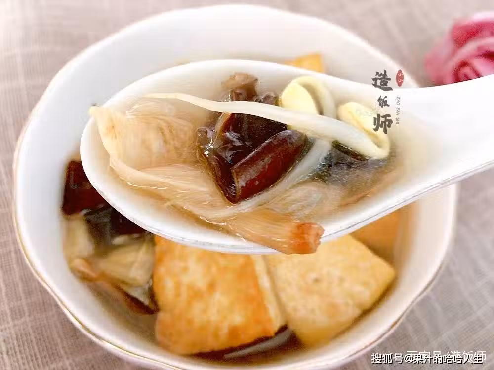 [食材]:干黑木耳10克,干黃花菜10克,黃豆芽100克,豆腐200克,生薑少許。