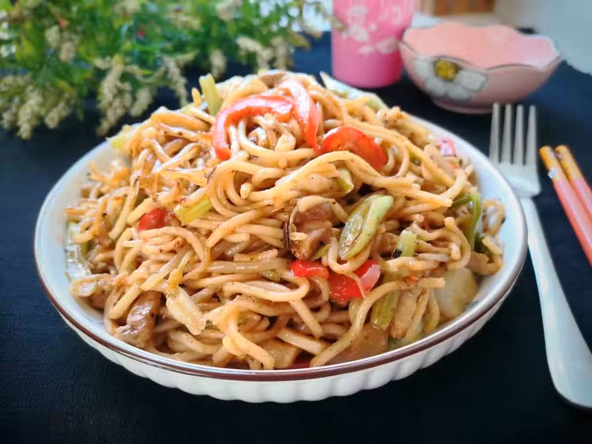 尤其到了夏季,天氣炎熱,吃別的麵食感覺會有一點熱,但吃炒麵就不一樣了,感覺不是很燙,吃起來也特別香。昨天剛吃完炒麵,本打算今天吃米飯,但老公提出來想繼續吃炒麵,所以,今天我們家接著吃炒麵了。