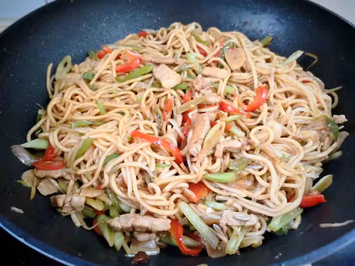 9、麵條爽滑入味,有肉有菜,營養和味道都不錯,夏季天熱,吃炒麵省心省事,讓你瞬間胃口大開,實在太好吃了,值得一試哦。