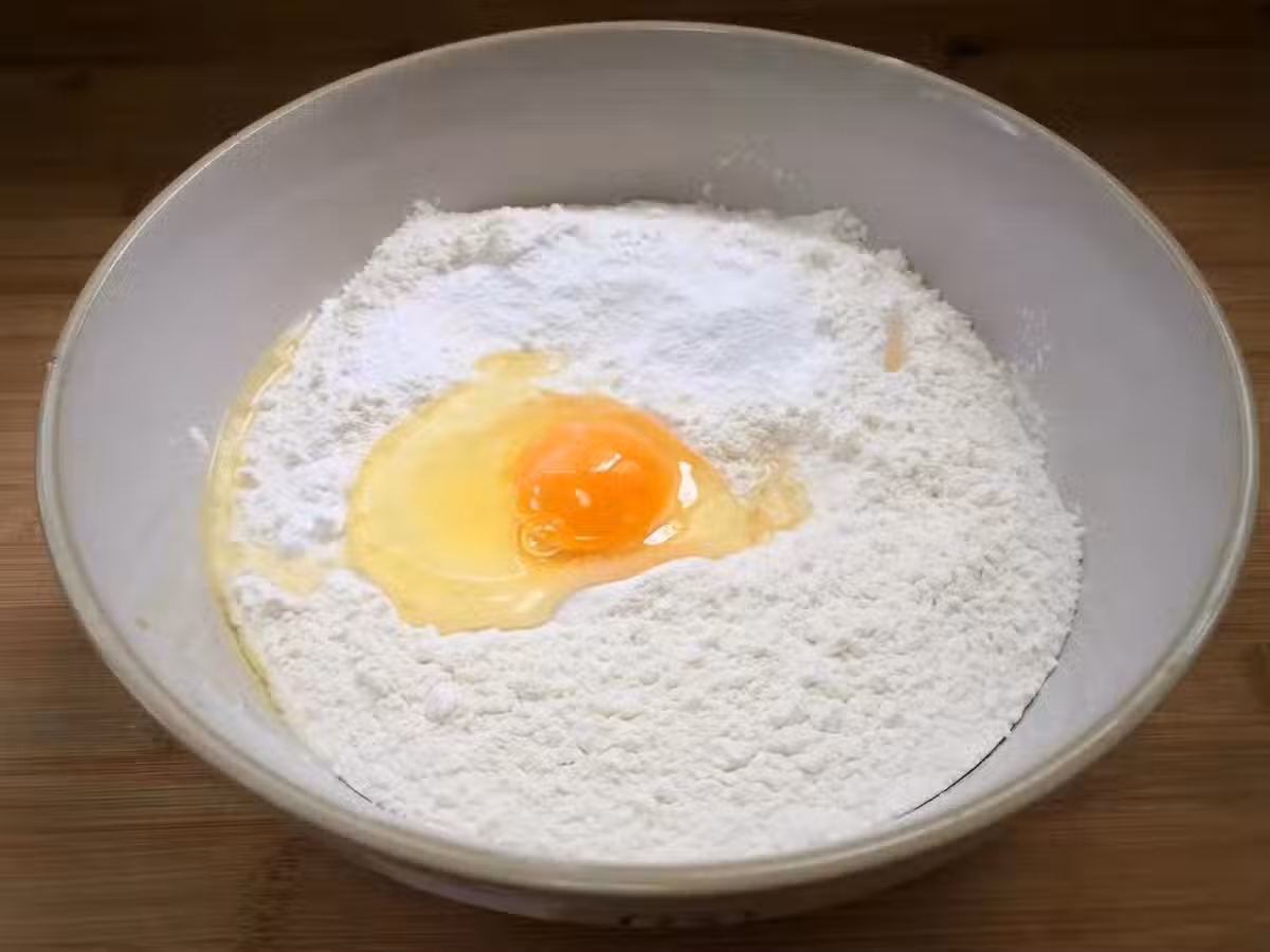 2、炸油條最好用40°溫水,緩緩加入280克溫水,邊倒邊攪拌,攪成面絮狀再下手和面,要和成軟一點的面絮。