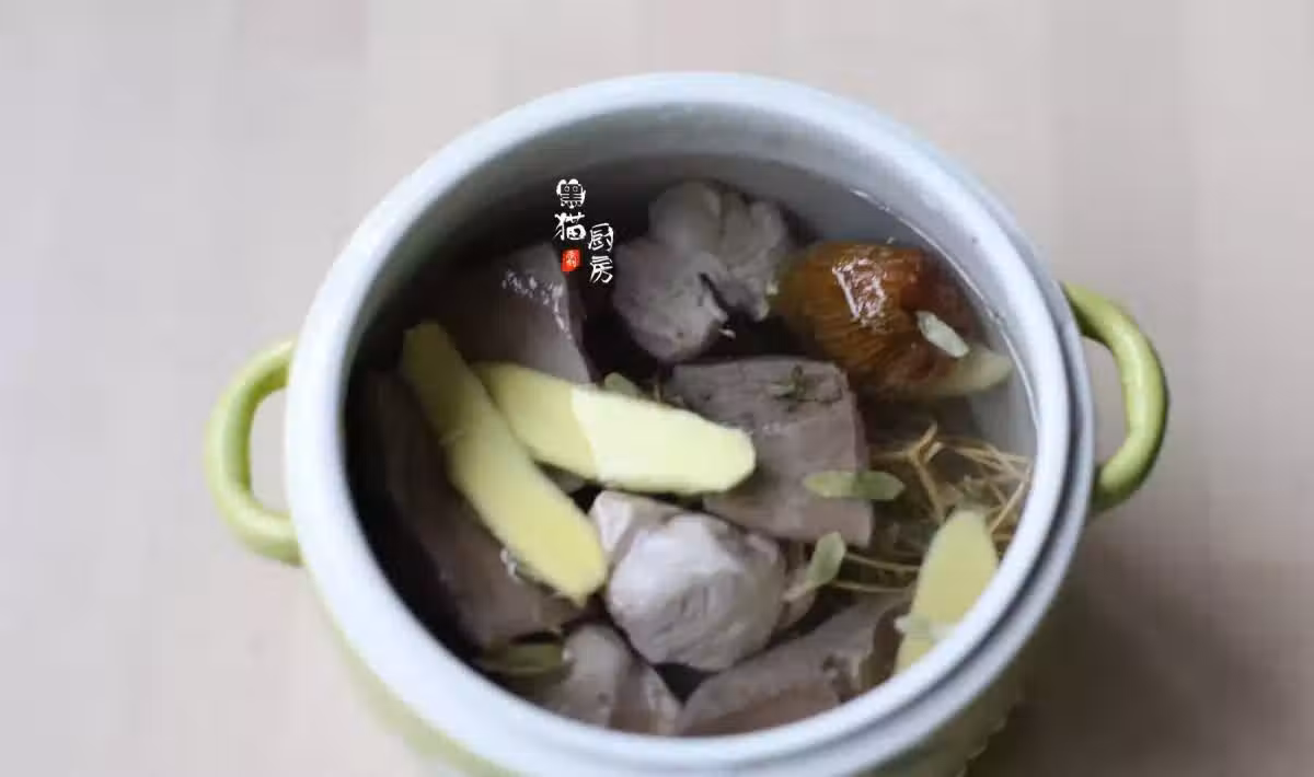 生薑去腥,也能去掉部分溪黃草的寒,豬腱和豬橫脷油脂不多,所以這湯非常清潤不膩口,趁熱加少許鹽,放置微溫的時候飲用即可。