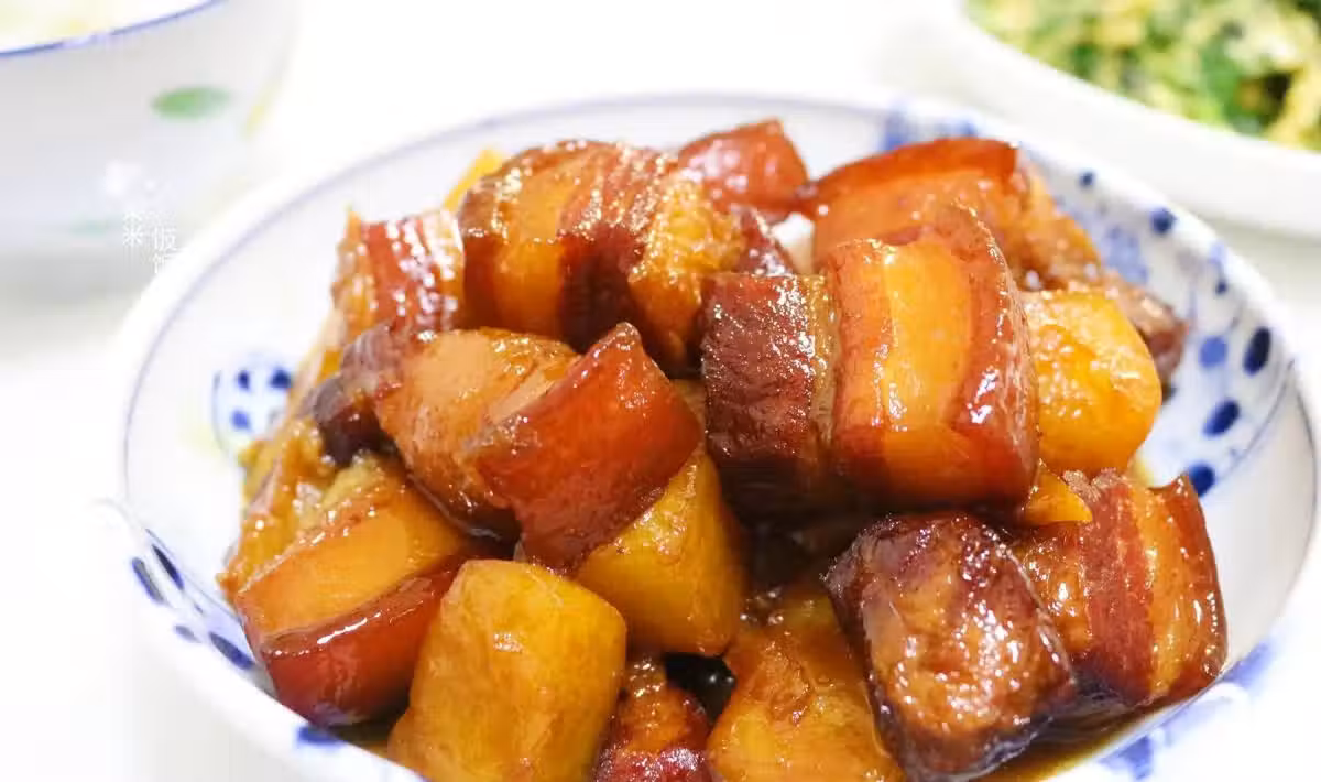 【食材】五花肉、土豆、姜、冰糖、老抽、生抽、鹽
