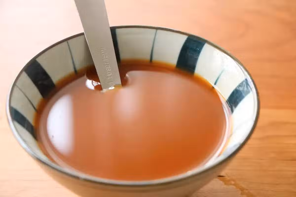 7、鍋中少加點植物油,油微微加熱之後把醬汁倒進去,不停地攪拌,直到把醬汁熬煮至粘稠的狀態即可。
