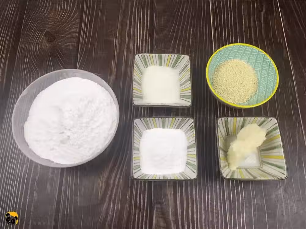 2、先用溫水將白糖化開,把糯米粉和先前化開的糖水攪和攪和團成麵糰,最後再將糯米麵團、豬油和澄粉麵糰混合,全部攪拌均勻即可。