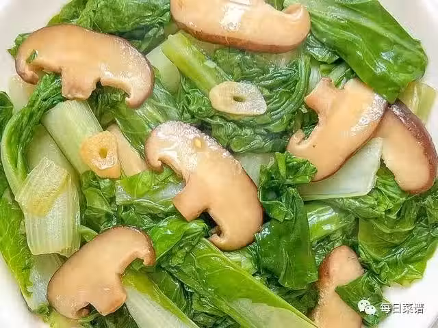 2、起鍋燒油,油熱後爆香蒜片,再放入香菇翻炒一會兒,炒軟後放入小白菜翻炒。