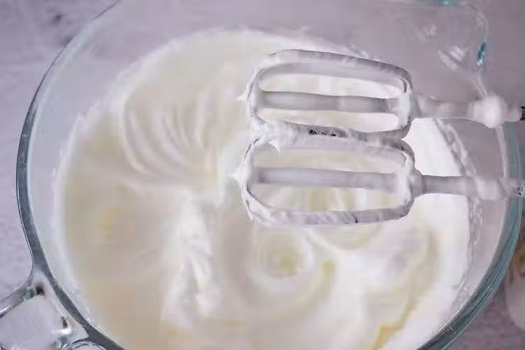 7、將準備好的雞蛋清中加入適量的檸檬汁打發至挺立的狀態。