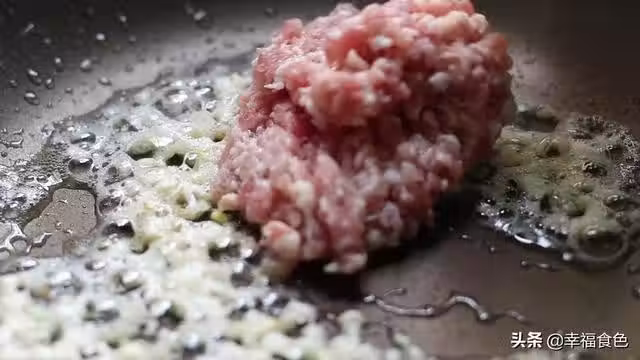 5、加入1勺食用鹽,1勺生抽,1大勺蚝油調味。翻炒均勻使肉末上色,喜歡湯汁多的可以加點水。