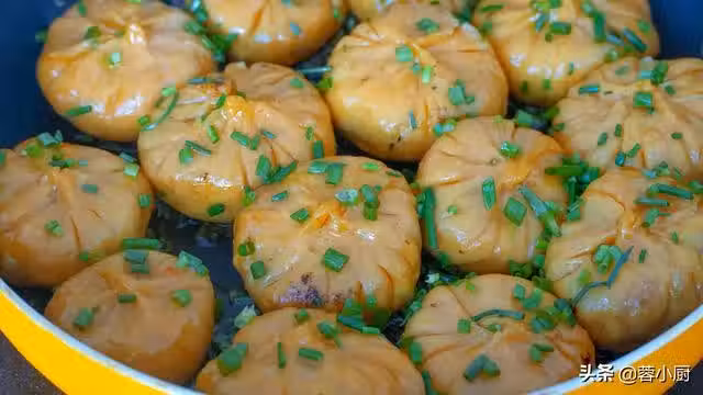 底部焦焦脆脆的,我這個晚了一分鐘出鍋,底部稍微有一點點的糊,大家出鍋的時候可以注意一下,基本上就是水分收乾了就可以關火了,迫不及待嘗了一個,真的很香,焦脆、酥香、勁道,掰開還滿滿的都是餡兒。