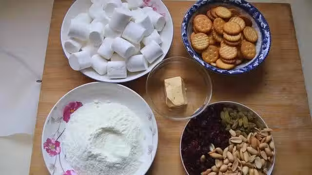 第二步:待黃油全部融化之後,倒入160克棉花糖,小火炒化。