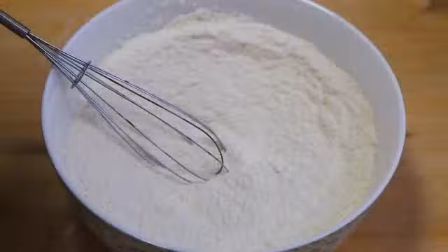 4、將攪好的蛋液分兩次倒入麵粉中,每次都充分攪拌均勻,沒有乾麵粉之後再加入30克玉米油,再次攪拌均勻。