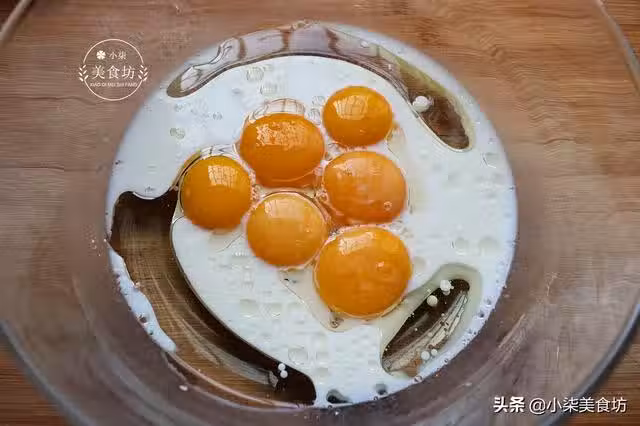 第三步:把蛋黃攪拌均勻,篩入100克低筋麵粉,如果家裡沒有低筋麵粉可以用普通麵粉代替。