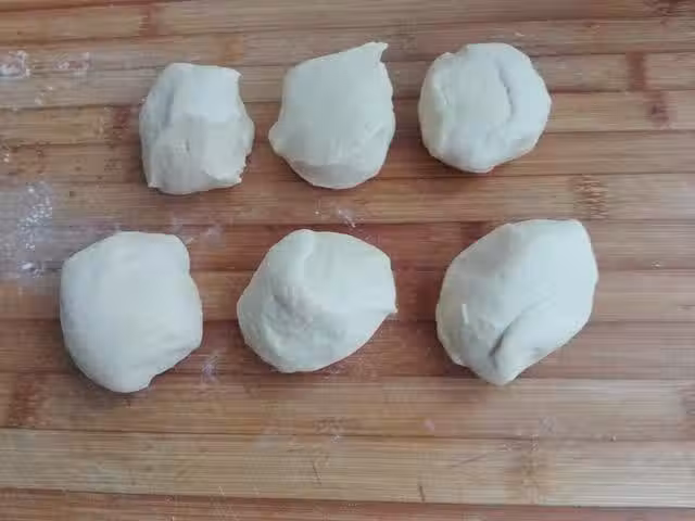 10、將其分別揉光滑後,搓成一個兩頭尖的長形餅胚,如圖所示,進行醒發15分鐘。