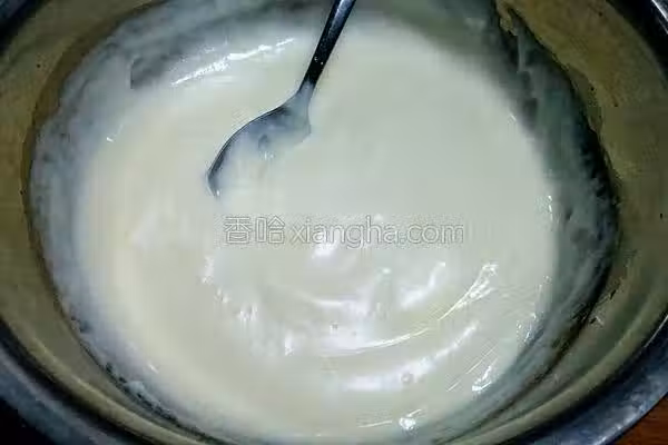 6.倒入鋪有椰蓉的保鮮盒中晾涼後放入冰箱冷藏四小時以上。
