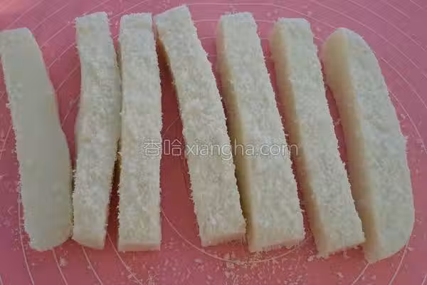 8.在椰蓉裡面滾幾下,使牛奶方塊沾滿椰蓉。