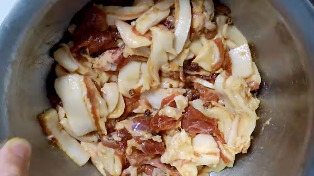 4.把鍋燒熱,倒少量的油,四成油溫左右,把肉片倒下去煸炒。這里強調一下,如果想讓肉片肥肉出油,瘦肉不柴,一定要用小火來煸炒,這樣才能慢慢逼出油脂香味的同時讓瘦肉中的水分不至於迅速揮發,導致發硬發柴。一直煸炒到肉片焦黃出油,滿屋飄香的時候就先撈出來控油。