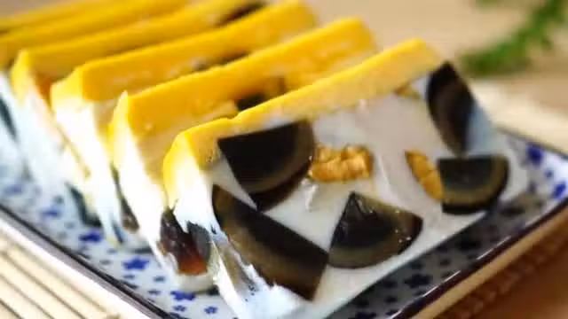 擺在盤子裡的三色蛋讓人驚艷,把鹹鴨蛋和皮蛋都結合起來然後倒入模具中做出來的樣子有三種顏色,口感要比單獨吃一種蛋來得豐富非常有創意。