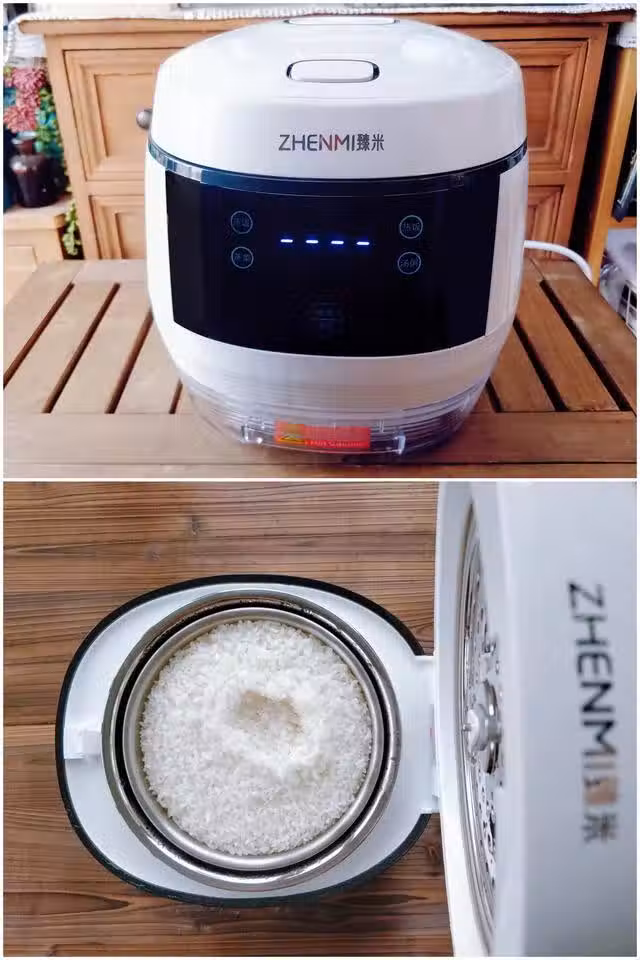 3. 把內膽和甑子一起放入臻米脫糖電飯煲內,啟動蒸飯功能,蒸22分鐘。