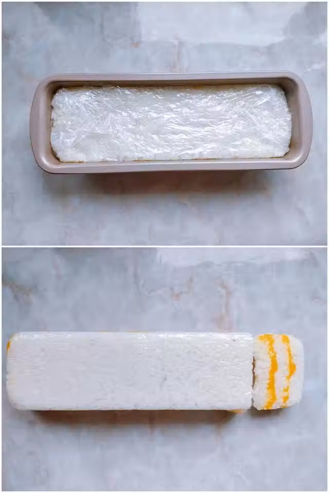 9. 直到鋪滿整個模具,用保鮮膜包好。