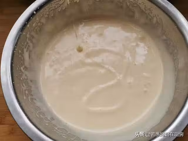 3、將麵粉分3次篩入蛋液中。這一步就不要偷懶哦,過篩後的麵粉更加細膩,拌麵糊的時候,才不會出現疙瘩。