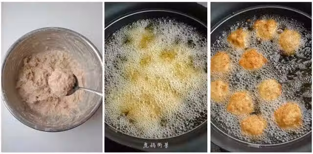 4.想要丸子更脆,一定要丸子全部撈出來之後再關火。否則油溫下降後會迅速進入丸子,會讓丸子變得油膩不脆了。