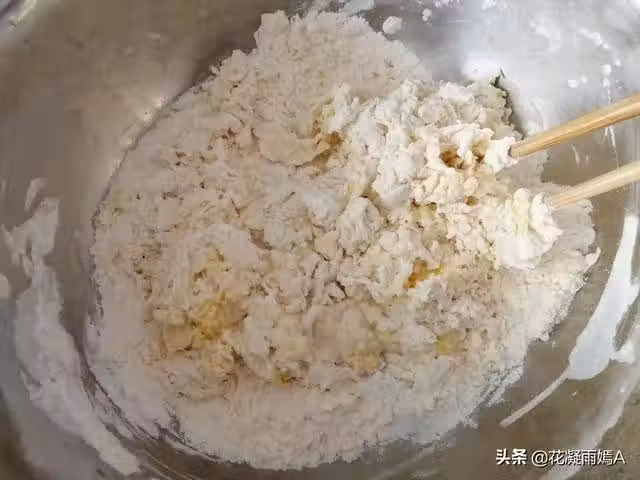 第二步:用筷子先把雞蛋和麵粉攪勻,然後再倒入酵母水,這裡我用了190克水,根據麵粉的吸水性分次加入水,如果不放雞蛋,可以轉換成水的量放進去。
