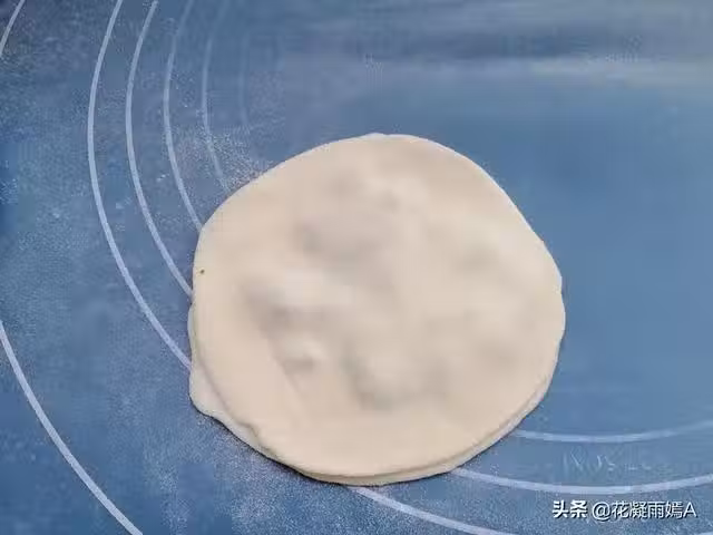 第六步:摞好的蔥花餅胚再擀一下,擀平整,擀薄一些,不要太用力壓。