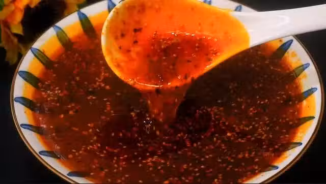 5、把雞肉放在煮好的菜里,然後倒入料汁浸泡入味就可以了,這樣做的缽缽雞,麻辣鮮香,吃起來真的很解饞。
