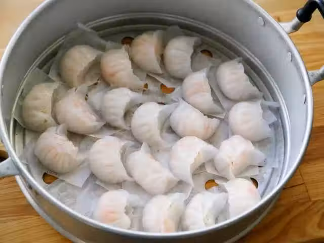 4.蒸海鮮類的水晶餃一定要水開上籠,用大火蒸。
