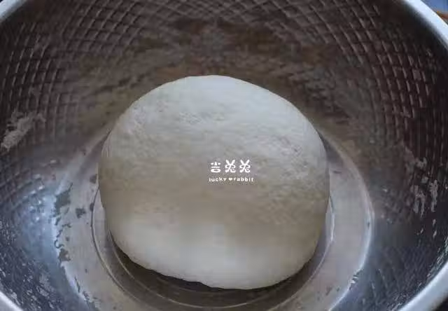 6、發酵好的麵糰排氣,擀成均勻的面片。