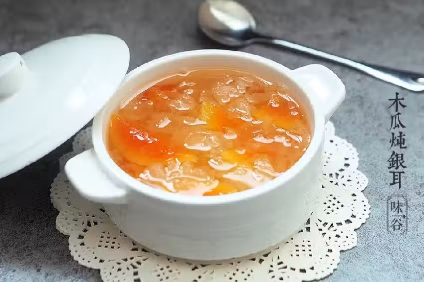 銀耳配合豐胸效果顯著的木瓜同燉,可謂是「美容美體佳品」,能滋陰潤肺,味道清甜外觀非常好看,深受婦女同胞的愛戴。