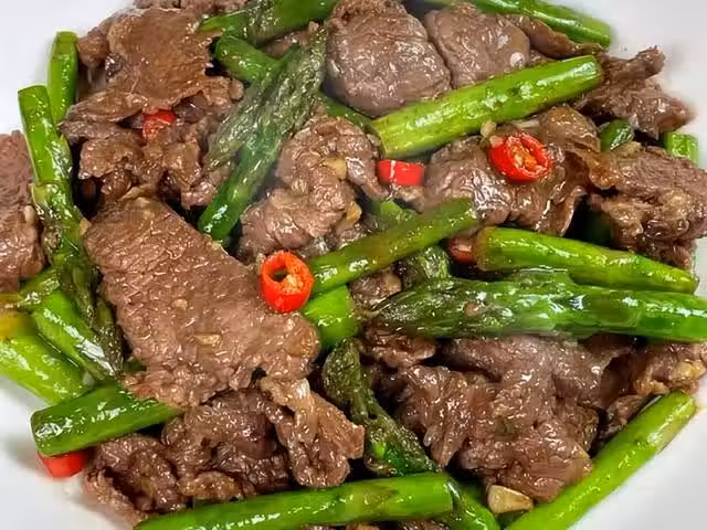 蘆筍炒牛肉是一道粵菜,用嫩滑的牛肉和清香的蘆筍一起炒制而成,牛肉鮮嫩多汁,蘆筍爽脆甘甜,色澤清淡雅致。這道菜是一道很適合春天吃的菜,可以滋補身體,也可以清爽口感。這道菜不僅好吃,還有營養價值。牛肉含有豐富的動物蛋白質和鐵質,可以增強血液循環和肌肉力量。蘆筍含有多種維生素和礦物質,可以利尿排毒和抗癌。