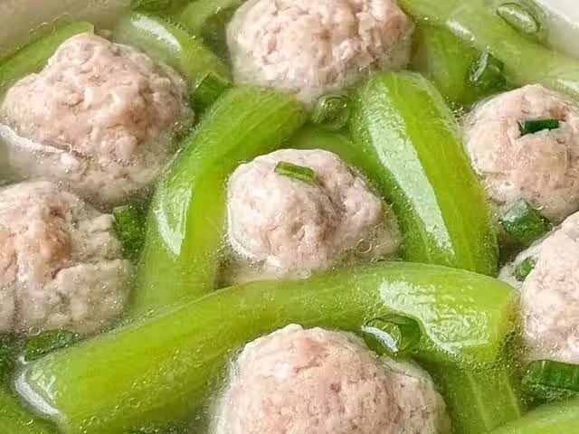 4、再將肉末團成丸子放入鍋中煮5分鐘左右,丸子煮熟後,加入食鹽和胡椒粉調味,攪勻煮入味即可出鍋開吃。
