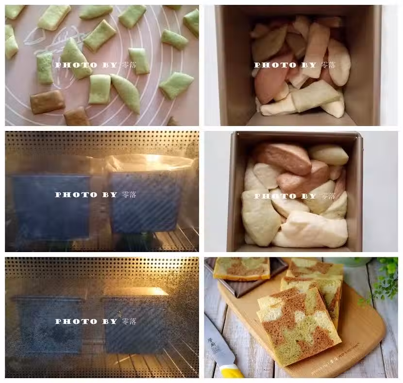 8、將面塊放入吐司模;不同顏色的面塊分開放;