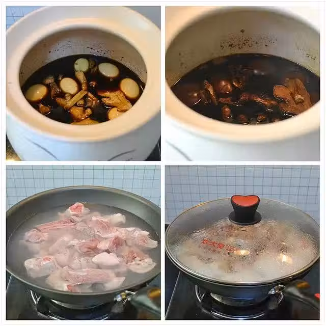 7,將豬腳加入到已經浸泡了一晚的姜醋里,開火大火燒開,再轉最小火煲40分鐘即可 。