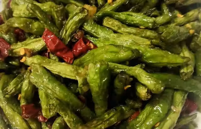 加入胡蘿蔔絲和青椒絲炒熟。