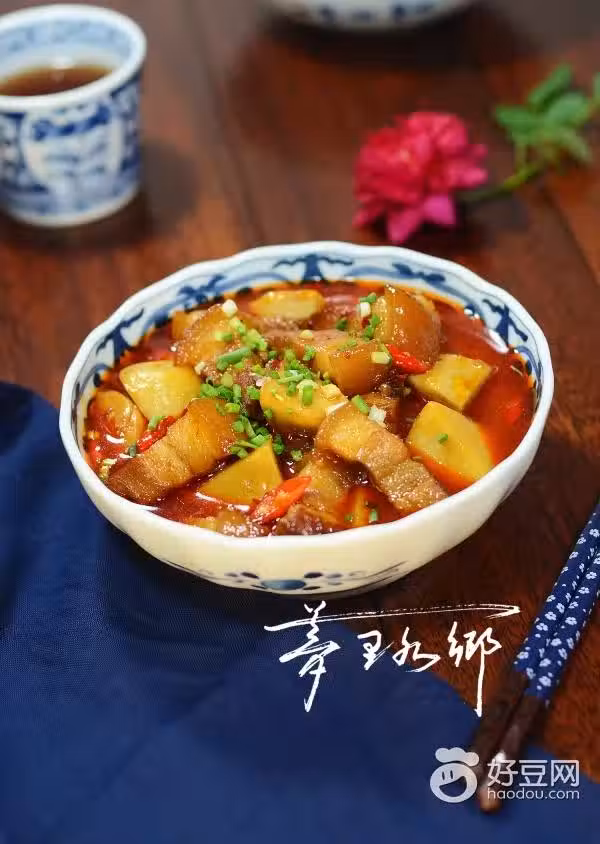 五花肉500克,芋頭800克,油、綠豆、紅辣椒、姜、老火鍋料、香蔥、白糖、生抽適量