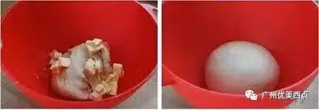 3.這是發好的麵糰,用手指沾點乾粉,戳個洞,麵糰不回縮也不下陷就說明發的正好。
